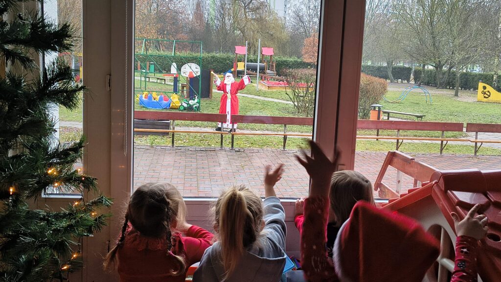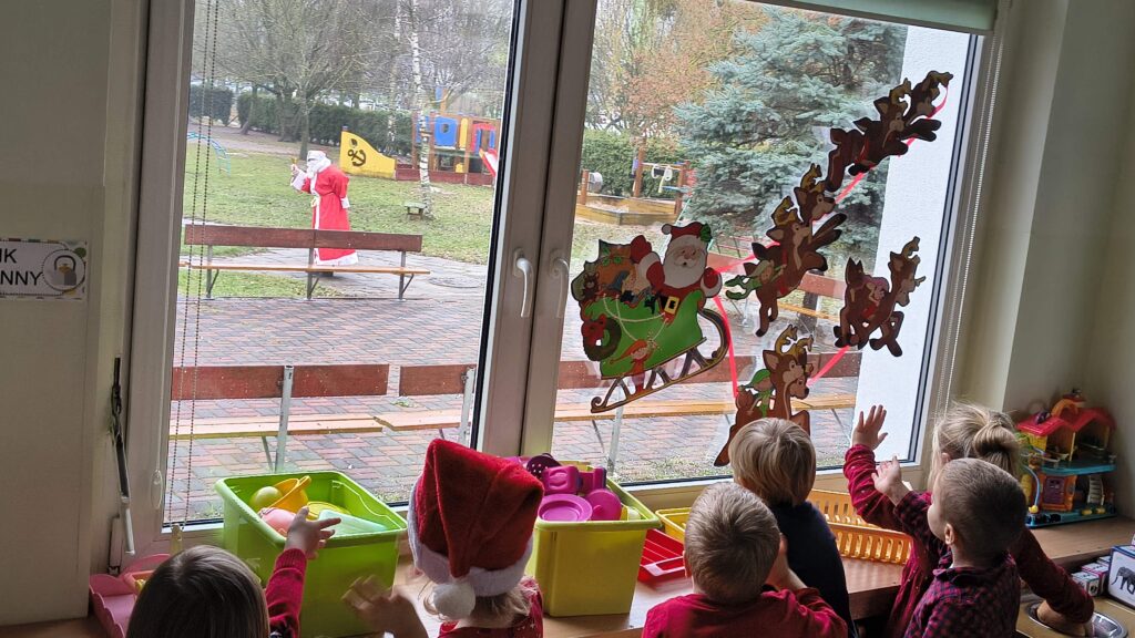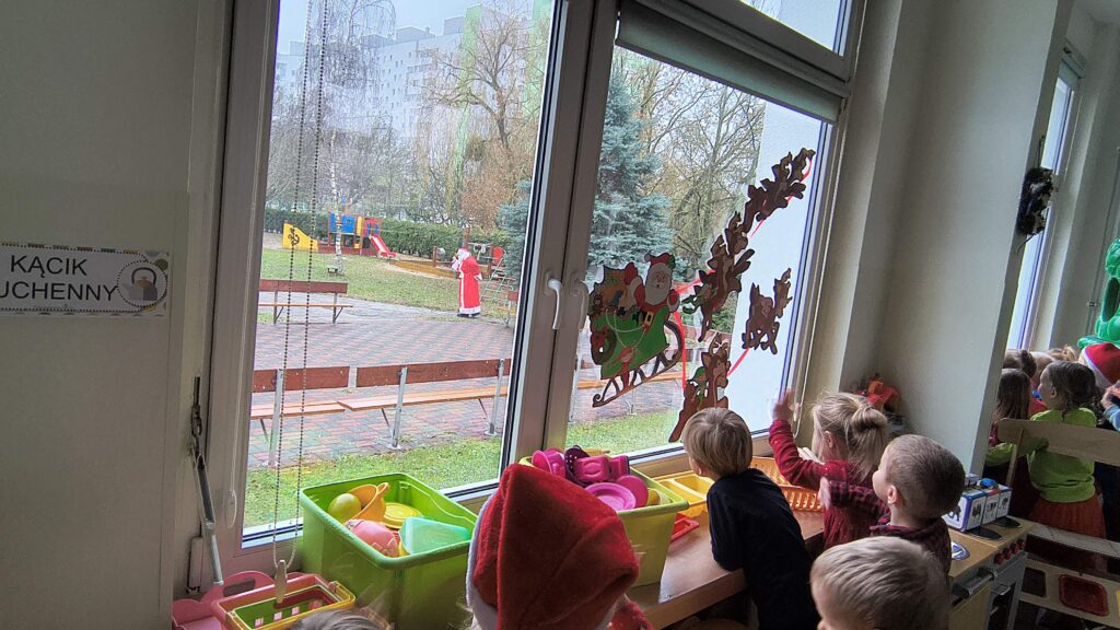 W naszym przedszkolu 6 grudnia rodziców i dzieci przywitała Pani Mikołajowa wraz z pysznymi babeczkami. A w samo południe dołączył Mikołaj, który spacerował dumnie po przedszkolnym ogrodzie, witając dzieci.